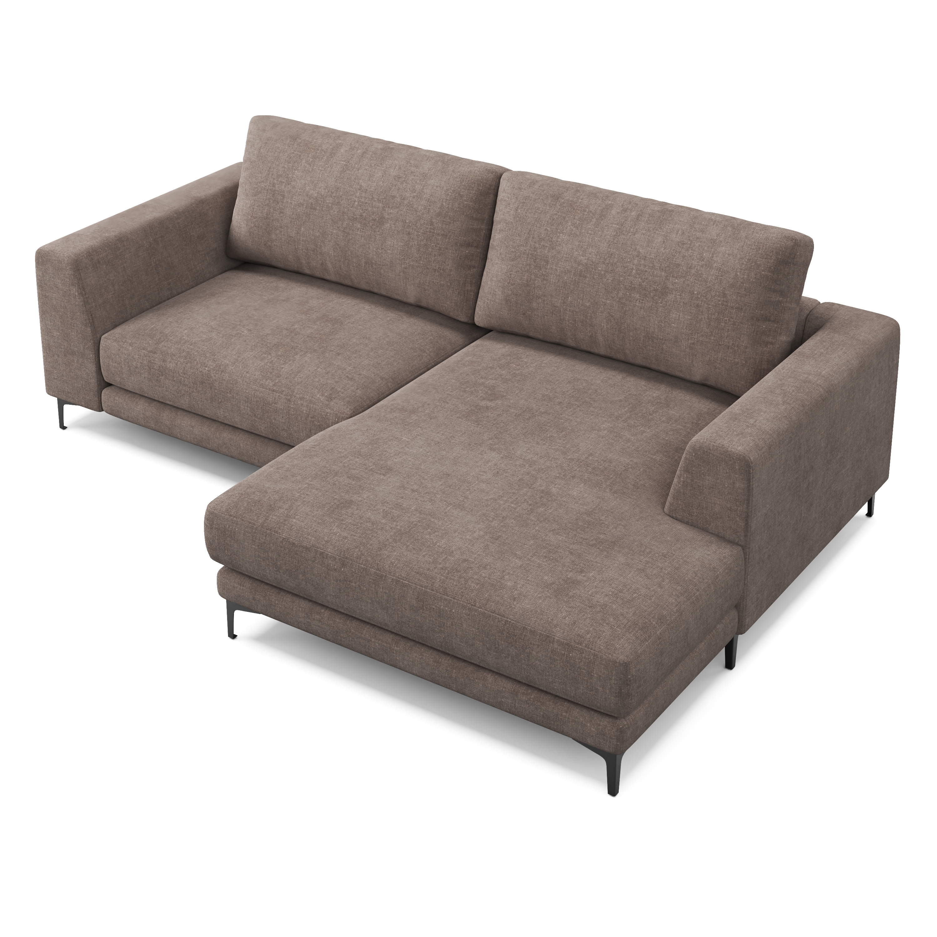 - Угловая конфигурация с правой оттоманкой — удобно размещается вдоль стены или в углу комнаты.