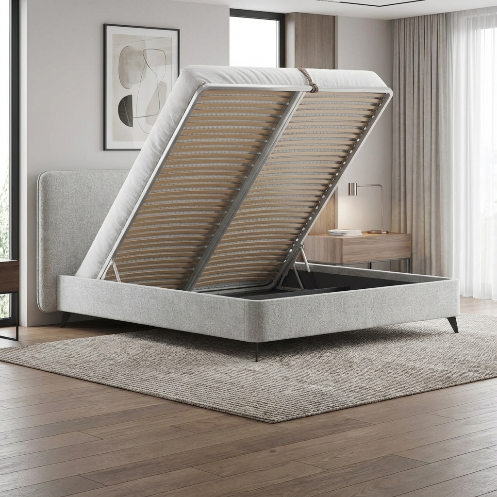 Но главной изюминкой является подъемный механизм, открывающий доступ к вместительному отделению для хранения вещей (оно есть даже в варианте на ножках!). Теперь вы можете рационально использовать пространство спальни и упорядоченно хранить постельное белье и сезонные вещи. Турецкие премиальные амортизаторы подъема обеспечивают плавное и бесшумное открывание и позволяют фиксировать положение в любой точке хода.